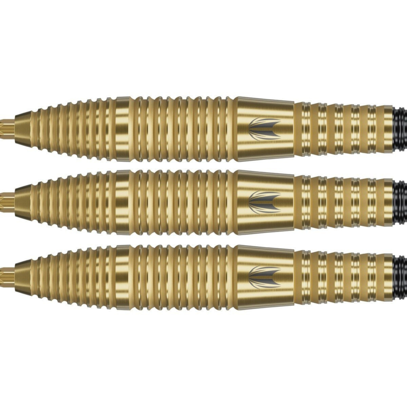 The Bolide Envy 05 90% SP Steeltip darts combine a compact barrel profile with a bold grip layout, delivering a dart that offers both striking visual appeal and dependable control. The distinctive gold finish highlights the precision machining of the barrel while giving the dart a premium look on the oche.