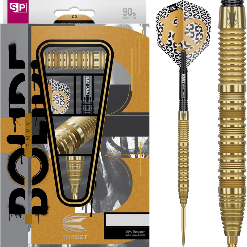 Target Bolide Envy 02 90% Swiss 24grDescriptionBolide Envy 02 90% SP Steeltip Darts – Compact Precision with a Refined Gold FinishThe Bolide Envy 02 90% SP Steeltip darts combine refined craftsmanship with a distinctive gold finish to create a dart that stands out…